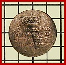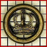 ROYAL NAVY, 1793-1795 PATTERN The first marked button for the Spanish Royal Navy was introduced in 1793 and was specified to be of "gold color, with an anchor." The example shown is from a private collection in Spain and is slightly convex, of cast brass, with an integrally cast drilled shank. After 1795, all Spanish royal forces' button devices included Spanish crowns over their unit or branch specific devices. |