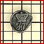 FIJO DE CUBA (One-Piece Varieties) Both Pardos y Morenos (Colored) and White detachments of the Regimiento de Infantería de Cuba served in the Floridas from 1790 to 1821. Several button varieties for this unit are shown above, all being of very thin, one-piece, die-stamped sheet brass with soldered copper or brass wire shanks. These delicate forms are of Spanish manufacture, the example at top, left having been struck on a slightly clipped planchet. These examples conform to 1796 Spanish regulations for fixed veteran unit regimental buttons. |
