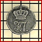 FERNANDO VII (Brass), Ca. 1808-1814 Several Spanish buttons marked with royal symbols and the cipher "F.7.o" or "F. VII" have been recovered in and beyond the study region, all of which are of ca. 1808-1815 British manufacture. The slightly convex example shown at left, made by Charles Jennens in London and probably an officer's button, displays the "FR. VII" cipher in raised Roman letters within a small wreath in the lion's paws; the other form (right), by London's Nutting & Son, is flat with the crown and "F°.7°" cipher incised. A Fernando VII line infantry regiment was raised in 1808 in Spain and dispatched to New Spain (Mexico) in 1818, but there is no known record of this unit having seen service in Florida. |